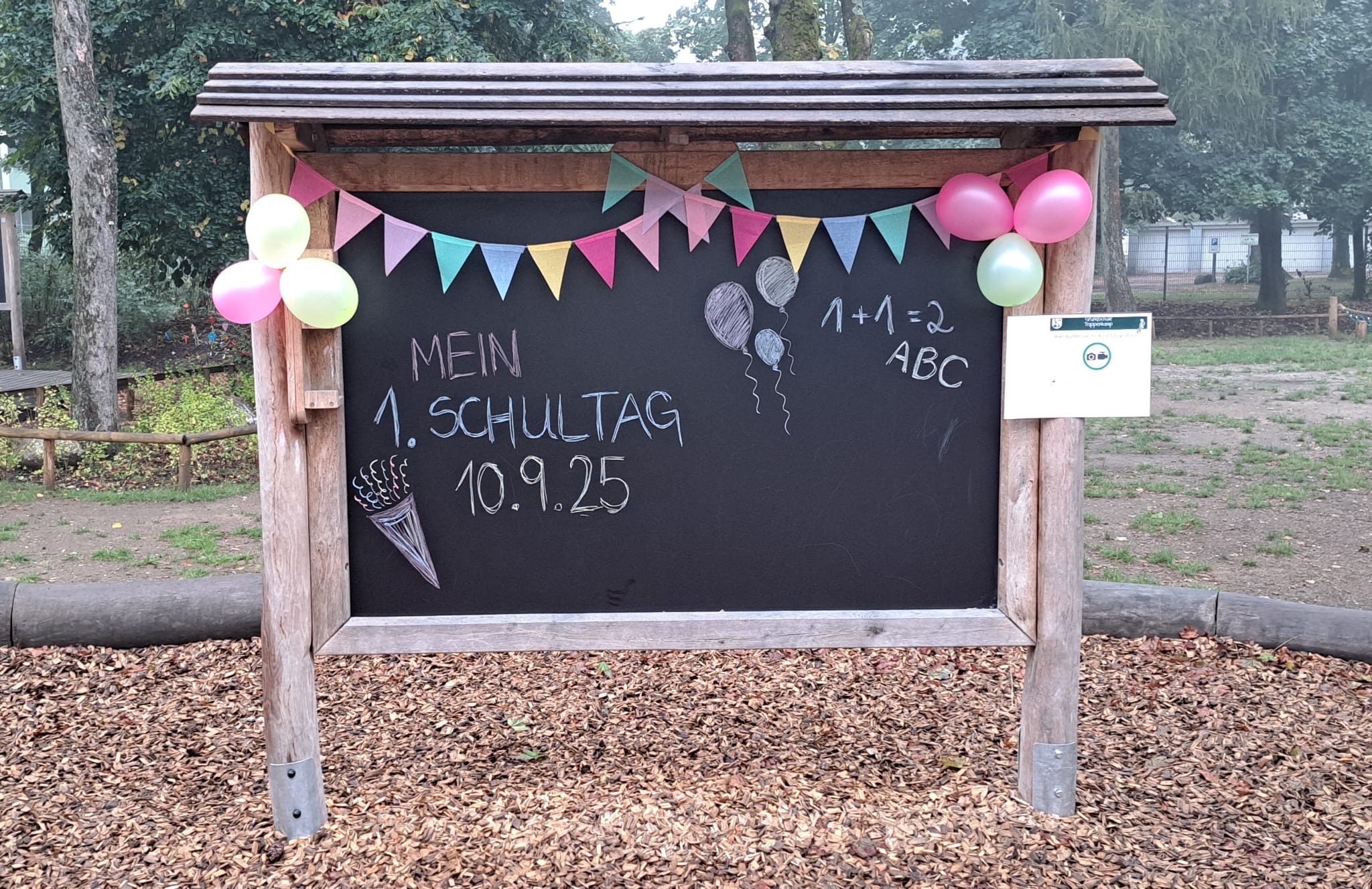 Einschulung 2023 Schwenken mit neuen Fähnchen